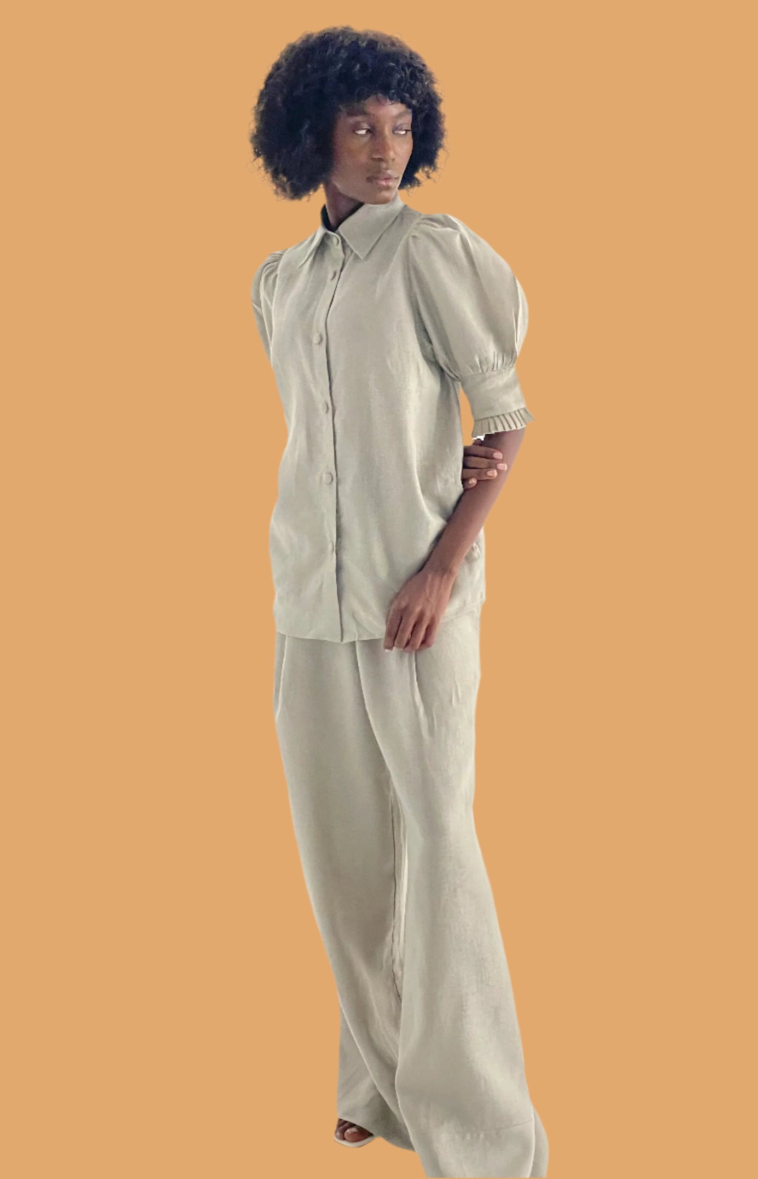 Our signature blouse perfect for the capsule wardrobe. Comes with matching shorts and trousers. Available in Oatmeal, Black and Burgundy
